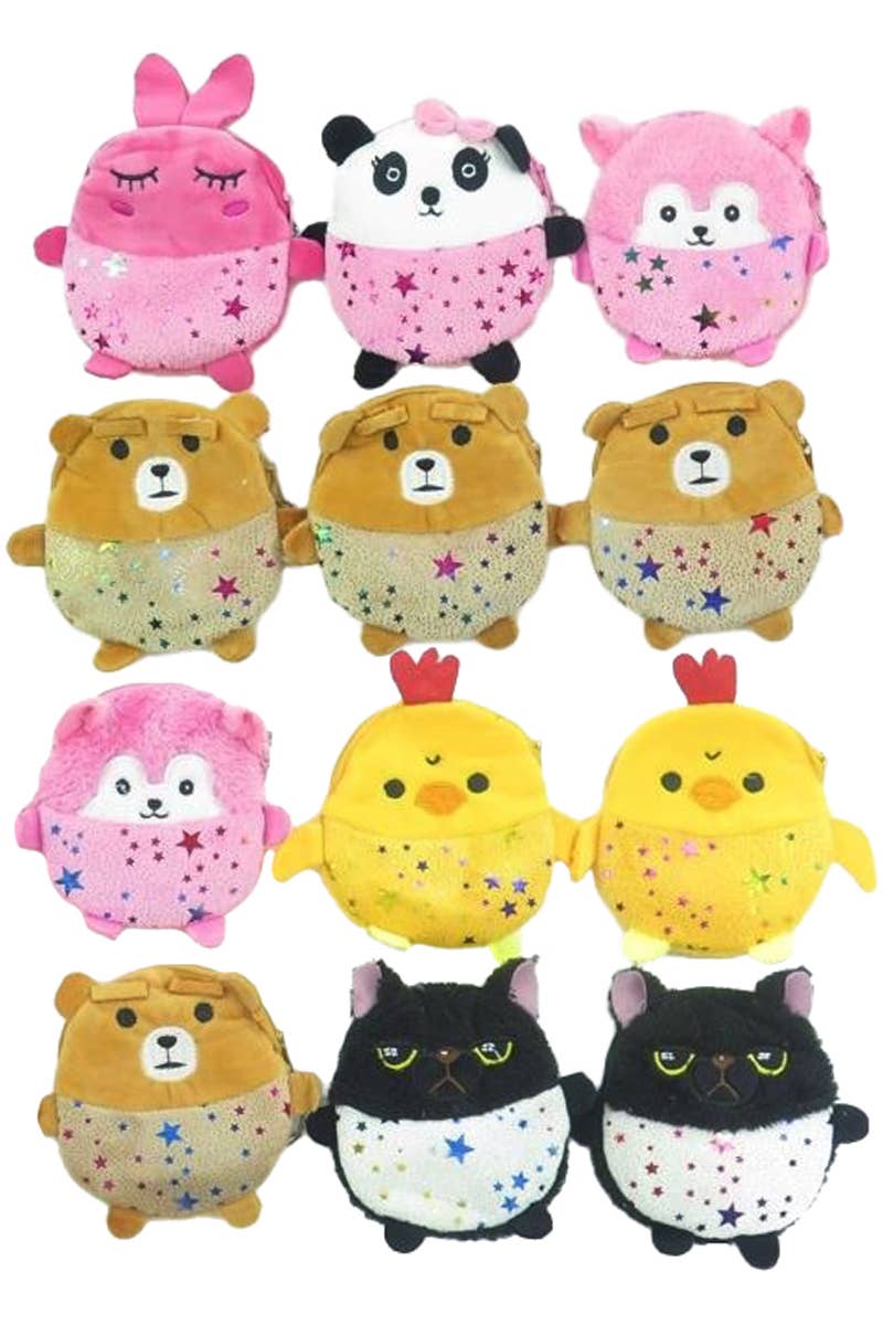 Animal Fuzzy Plush Zippered Coin Pouch Bag