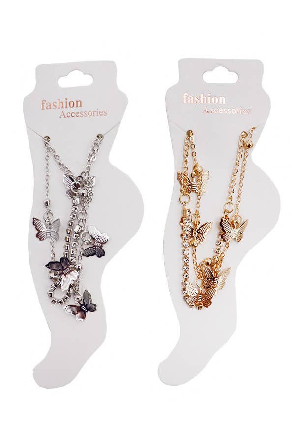 Butterfly Gold & Silver Chain Dangle Anklet